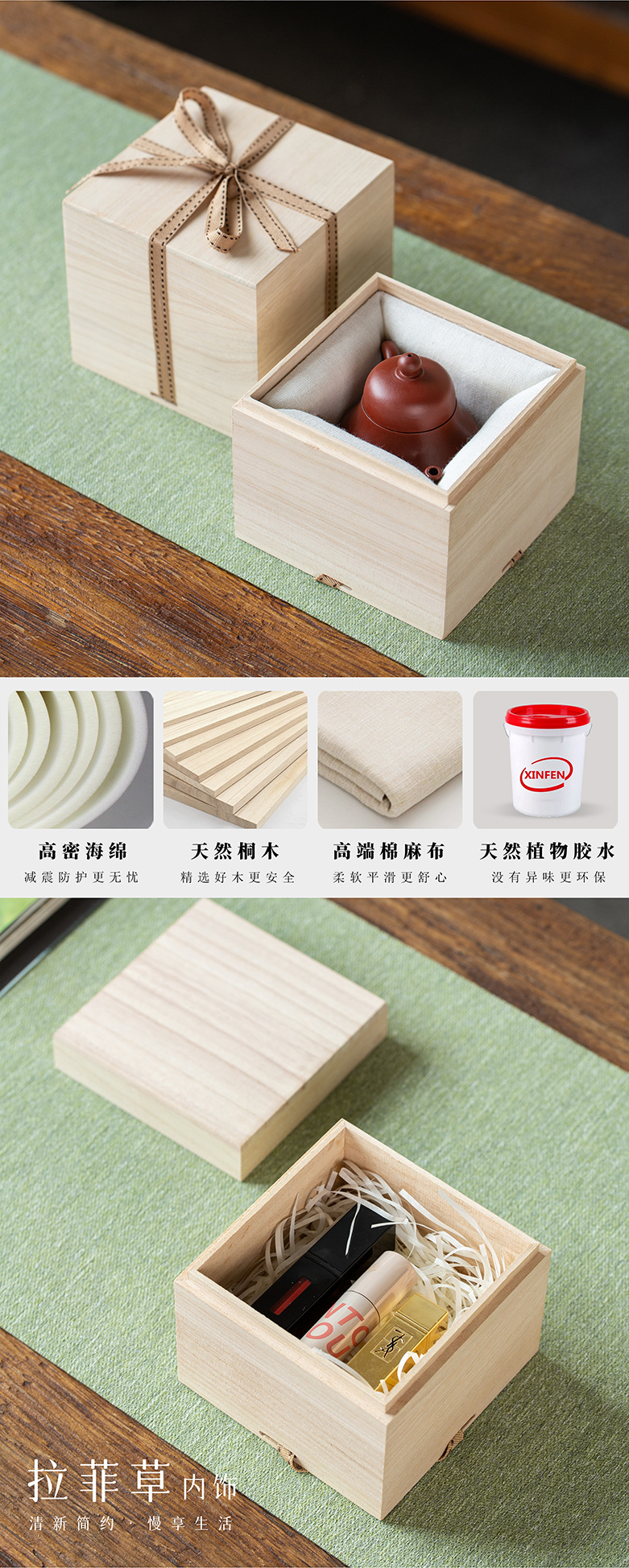 no. 5 single teapot gift box [raffia style]; paulownia lid and base box