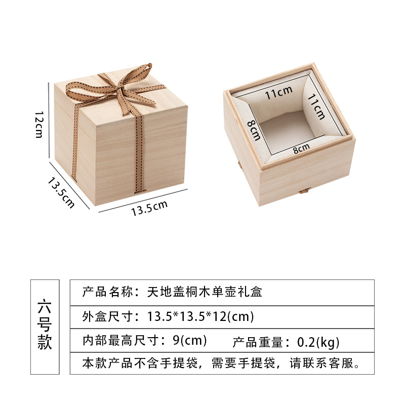 no. 6 single teapot gift box [cotton interior]; paulownia lid and base box