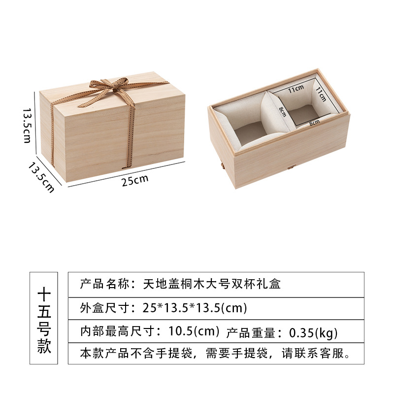 no. 15 large double cup gift box [cotton interior]; paulownia lid and base box