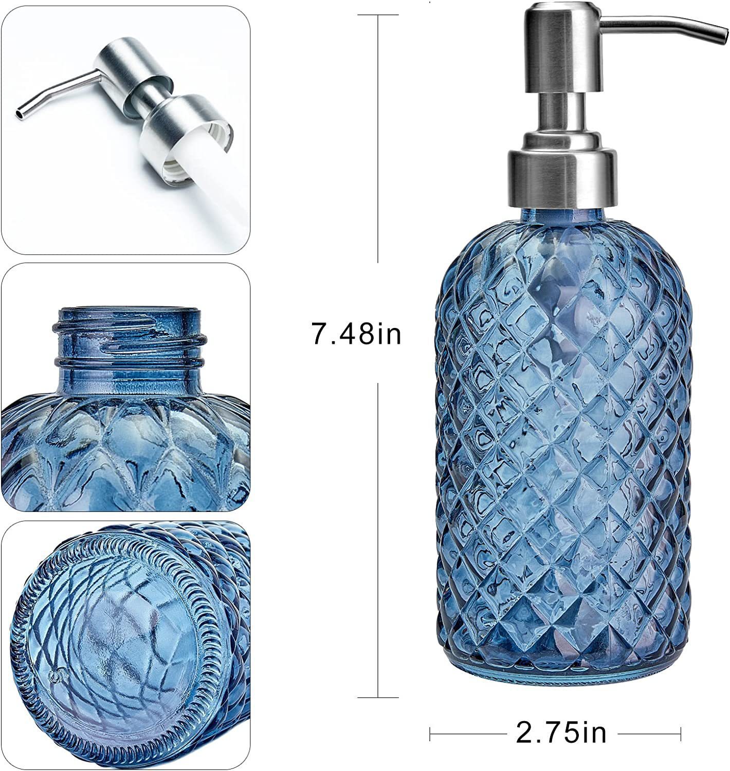 500ml; blue 400 ml204 stainless steel pump head; glass