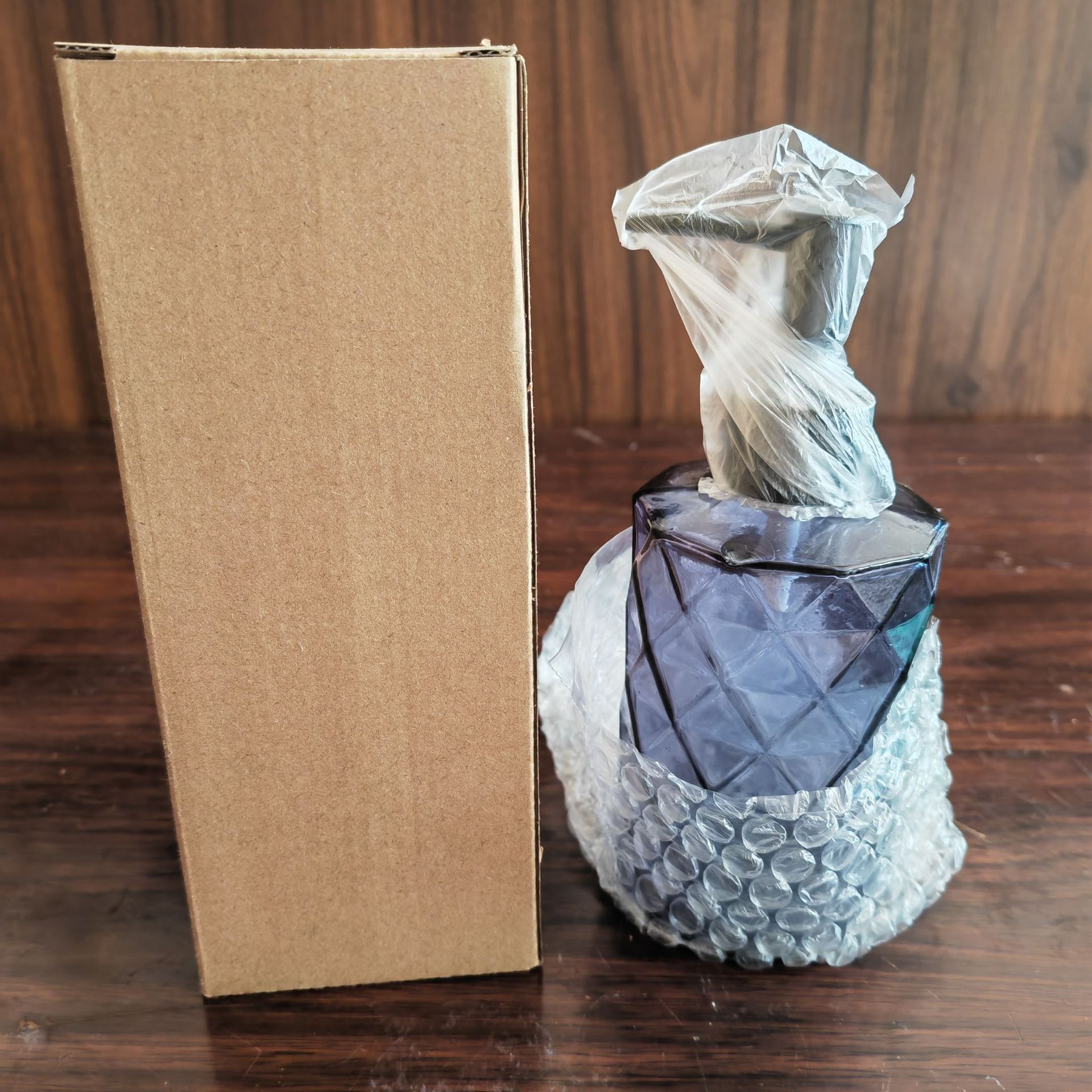 500ml; blue 400ml electroplated silver lid; glass