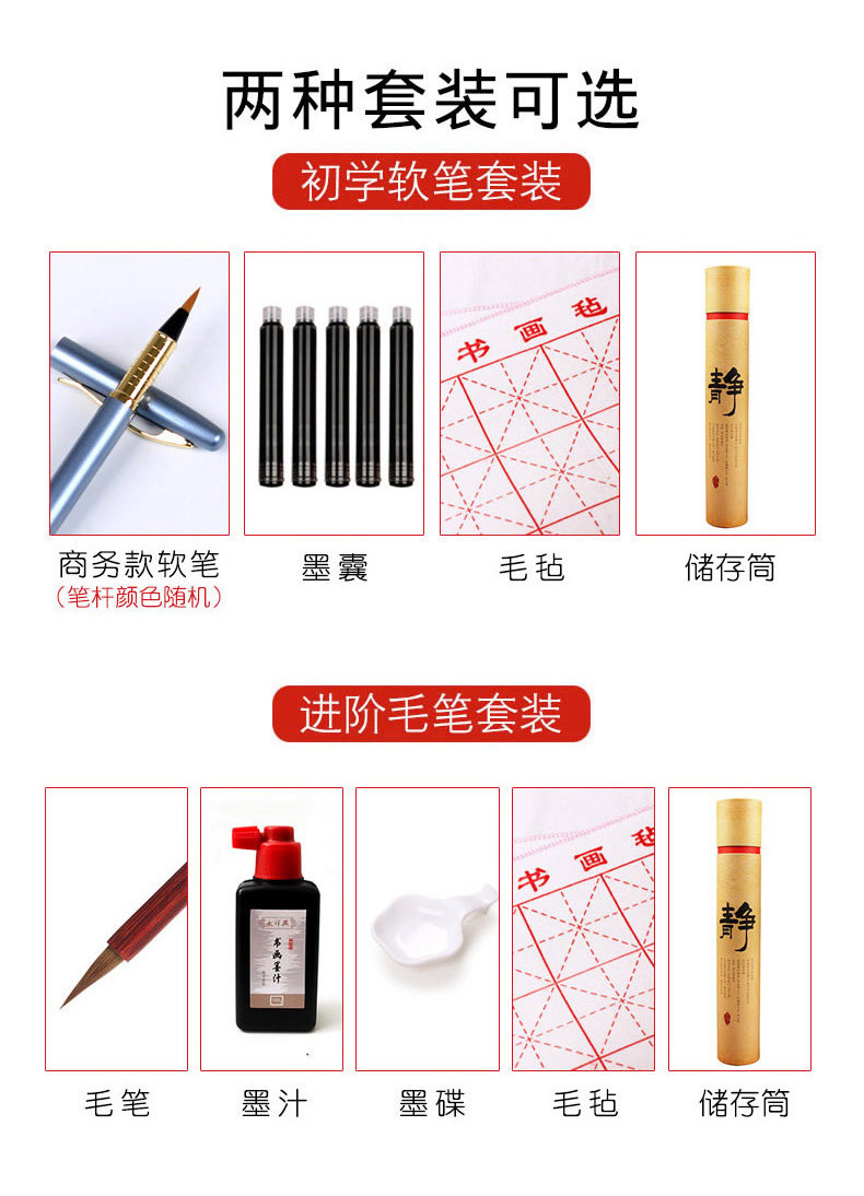 thirty-six meter (antique color) package b: regular script in small characters writing brush + ink + multifunctional ink plate + felt + storage tube