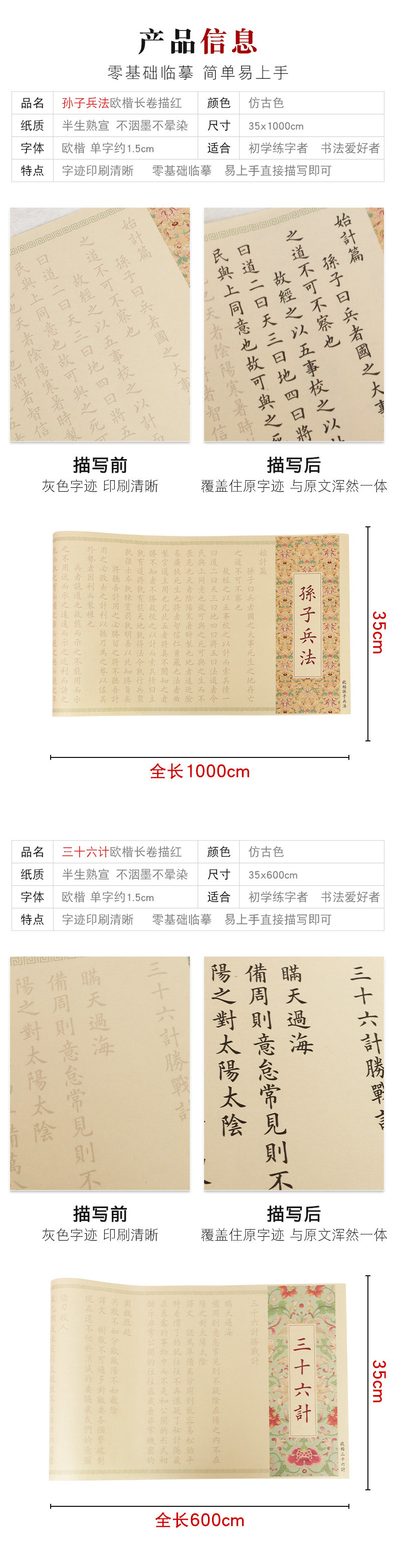 sun tzu's art of war +36 meters (two volumes) package a: pen-type writing brush +20 pieces ink sac + felt + storage tube