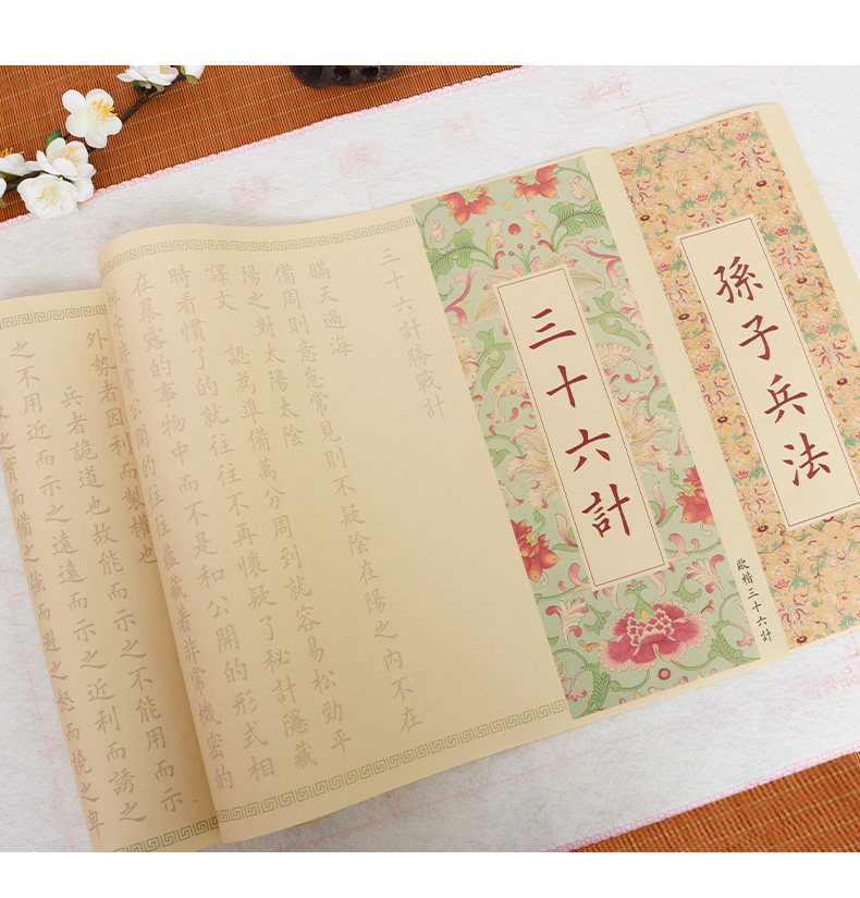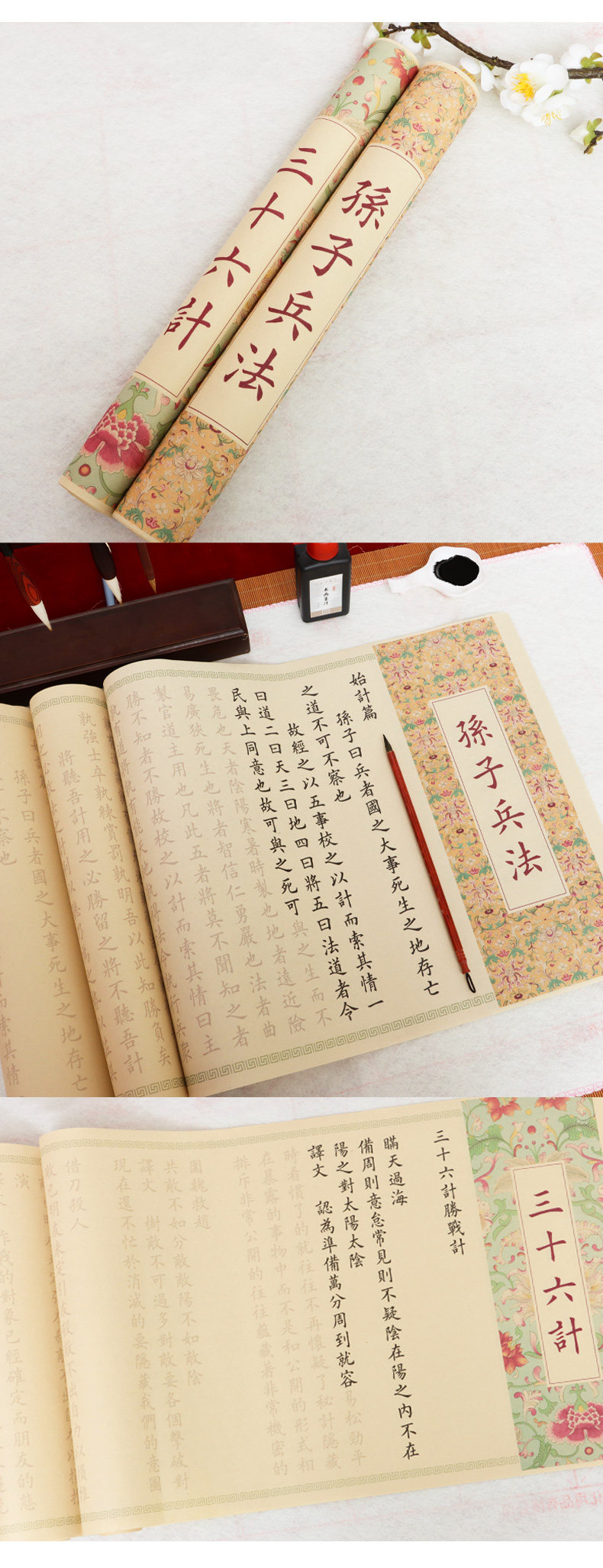 sun tzu's art of war +36 meters (two volumes) package b: regular script in small characters writing brush + ink + multifunctional ink plate + felt + storage tube