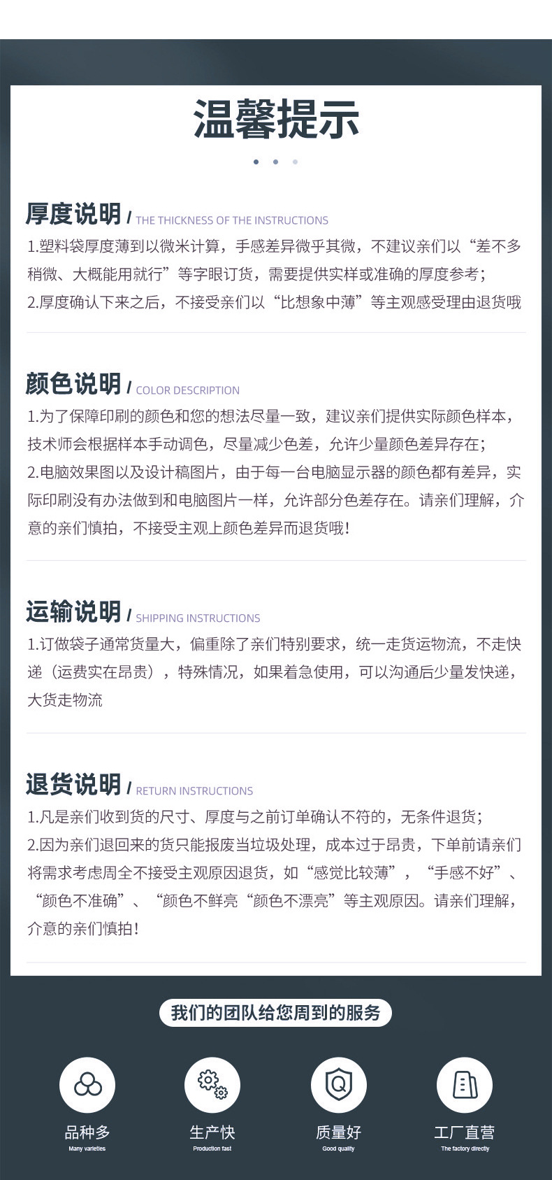 support different quantity packaging methods contact customer service