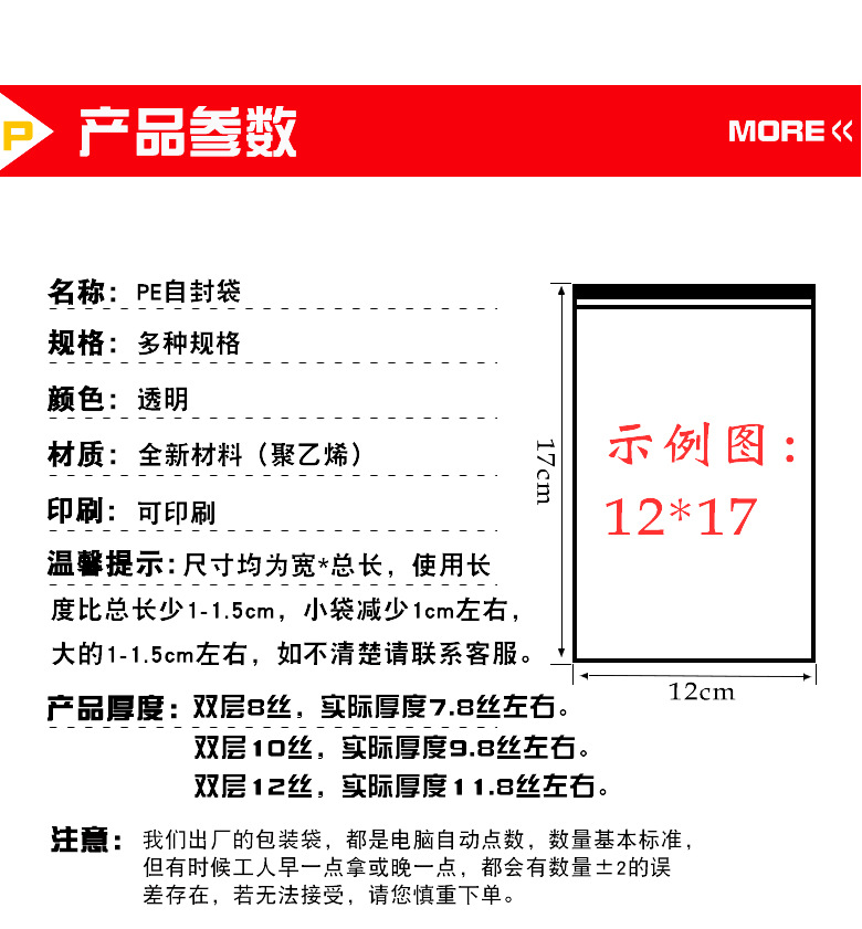 | thickened 12 silk (white thread) * 16*24(100 pieces) | CN¥ 10.8 | 889443 pack available |