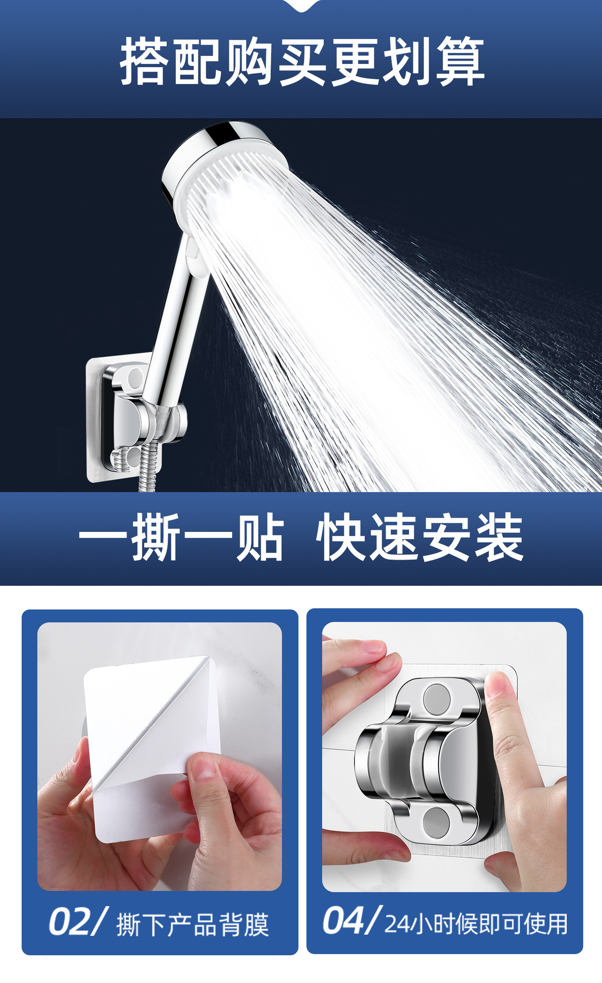 [silver 304 suit 3] 1.5 m 304 hose + shower bracket +5 block supercharged shower