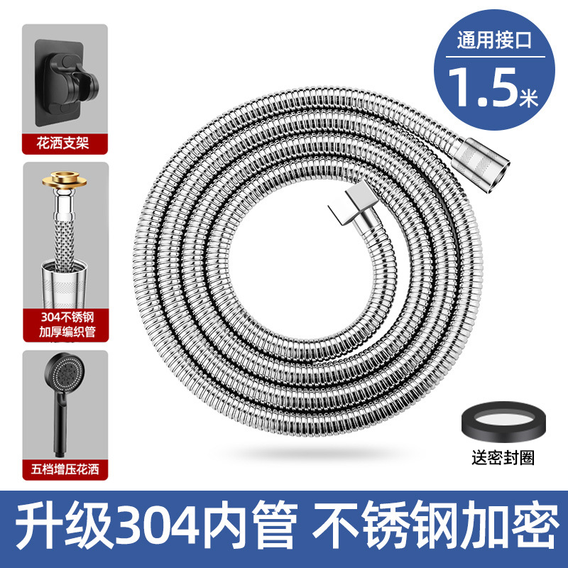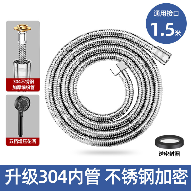 [silver 304 suit 2] 1.5 m 304 hose +5 gear supercharged shower