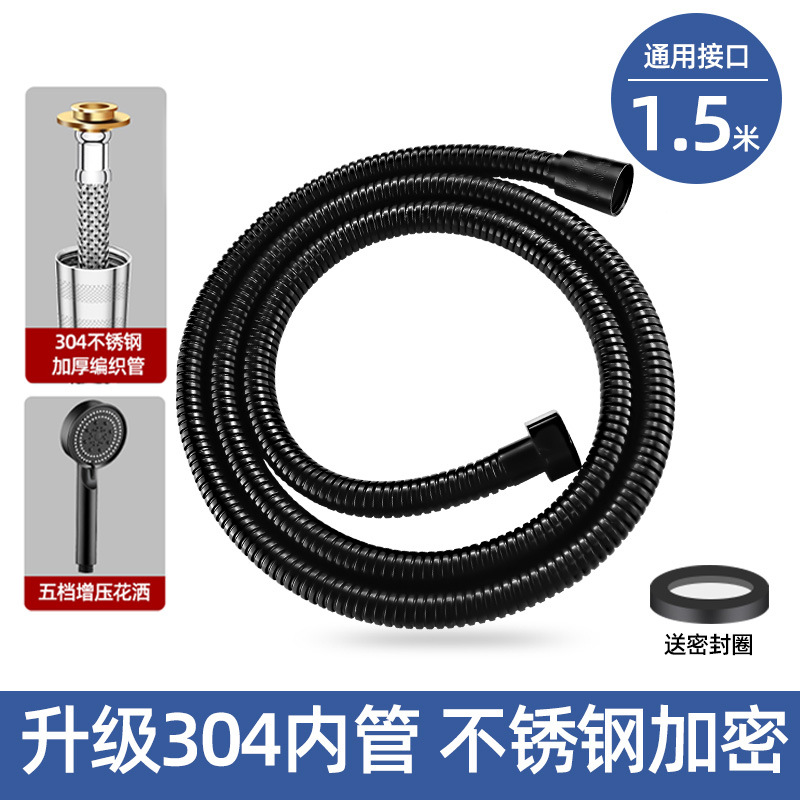 [black 304 suit 2] 1.5 m 304 hose +5 gear supercharged shower