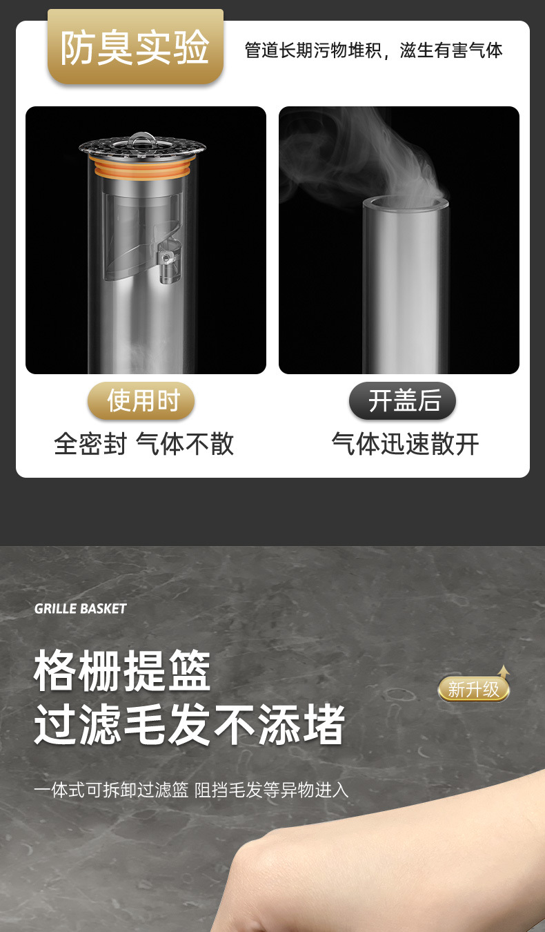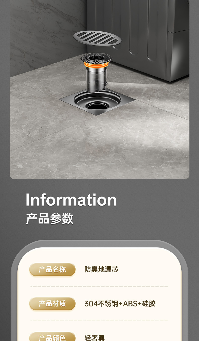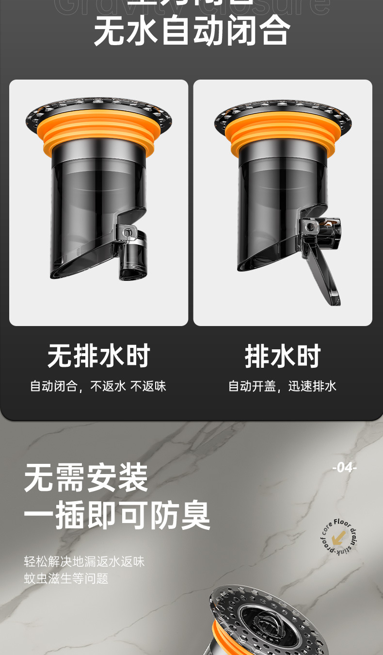 light luxury transparent black gravity closed deodorant floor drain core