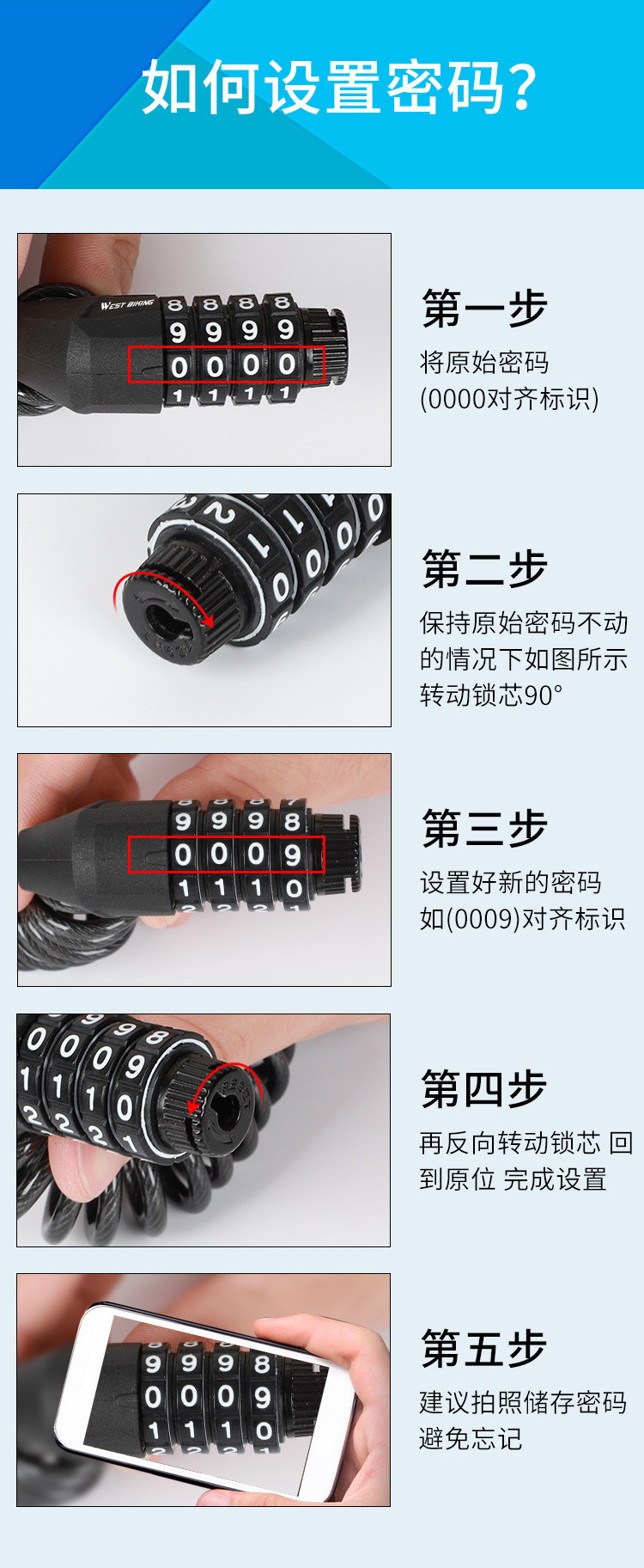 4-digit password helmet lock blue
