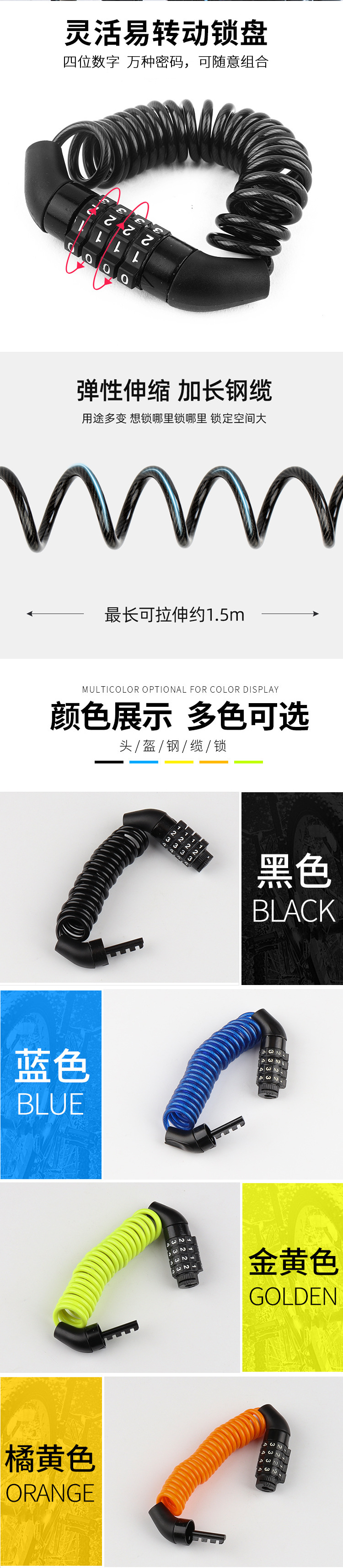 4-digit password helmet lock orange