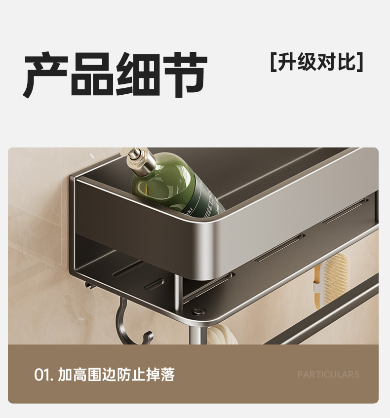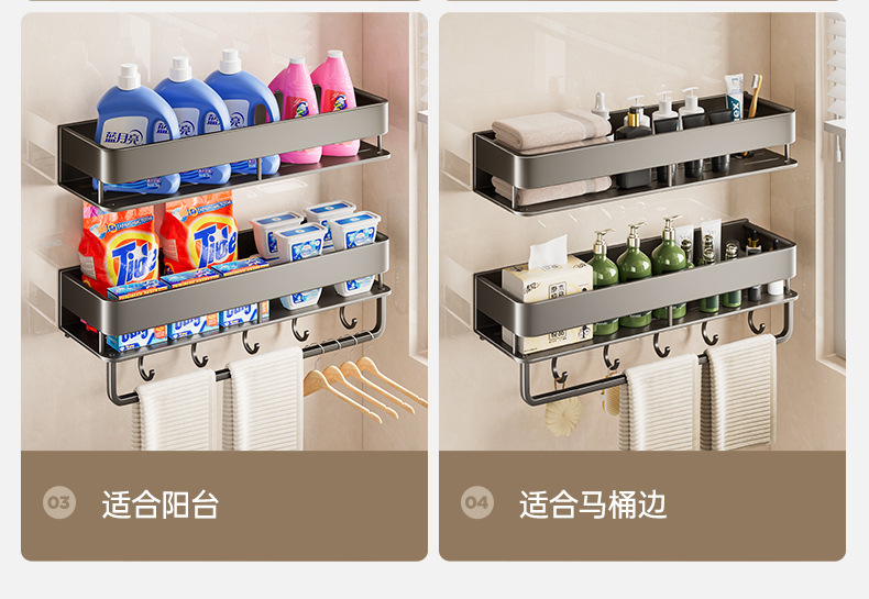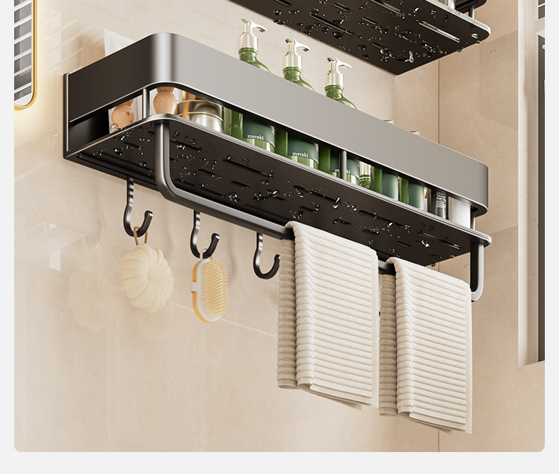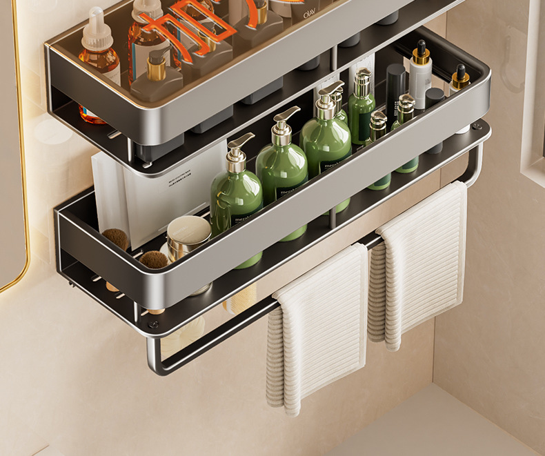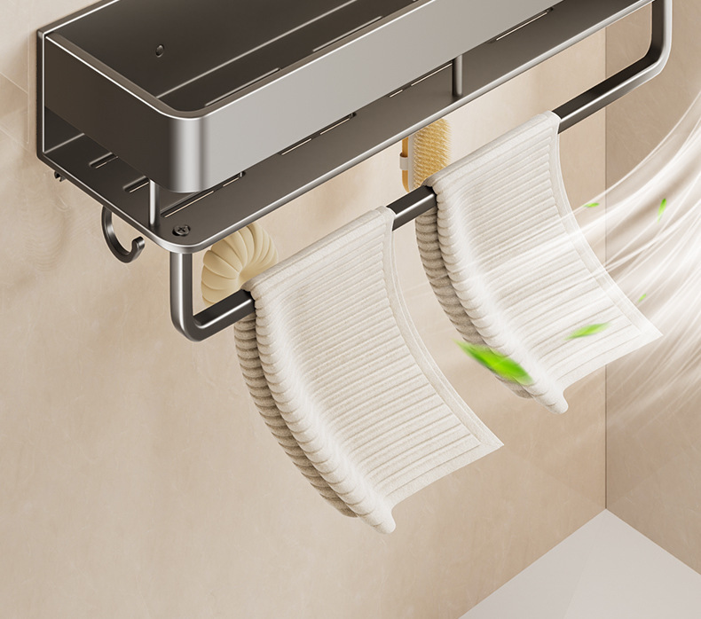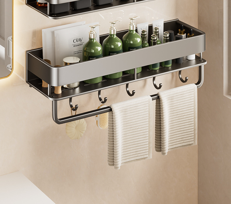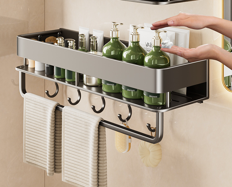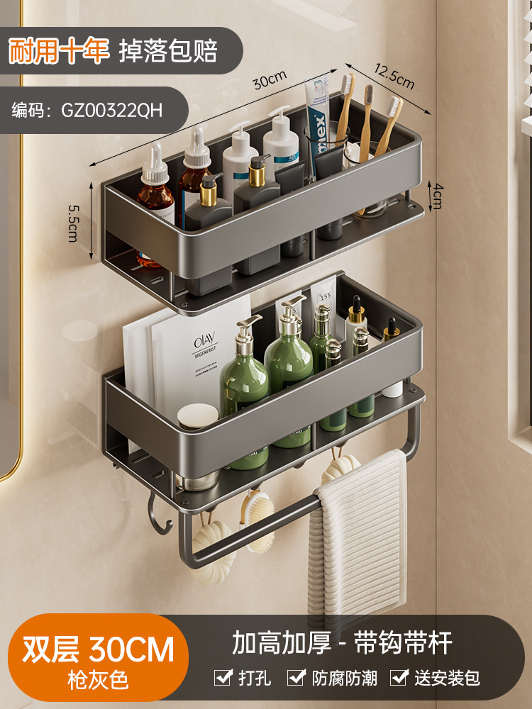double layer-[heightening] gun gray 30cm + towel bar +5 hooks