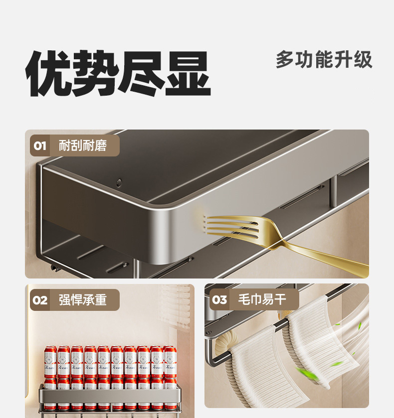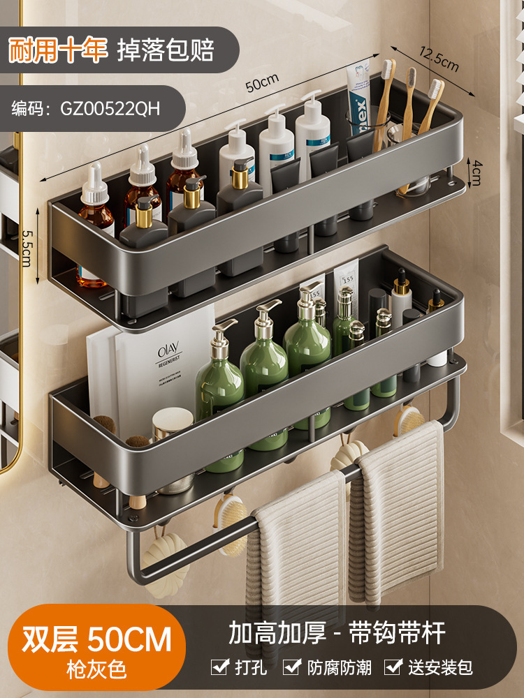 double layer-[heightening] gun gray 50cm + towel bar +5 hooks