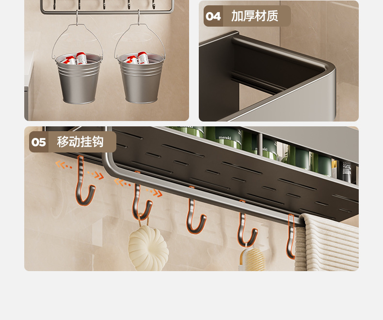 single layer-[heightening] gun gray 60cm + towel bar +5 hooks