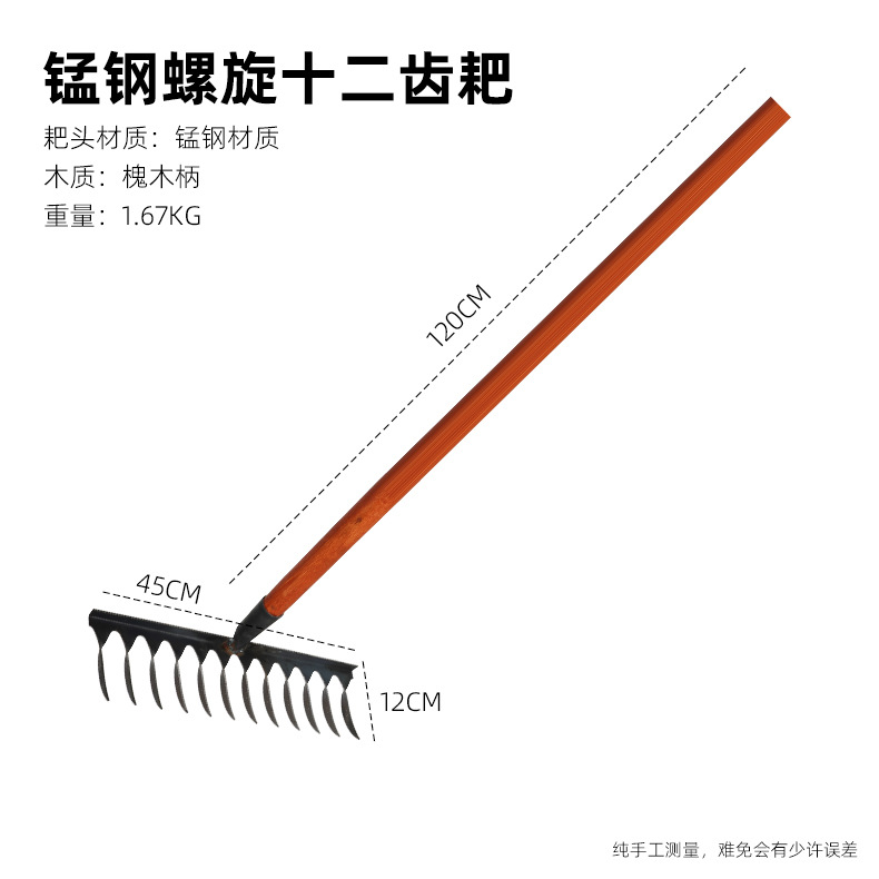 12-tooth spiral twisted tooth rake (no stick