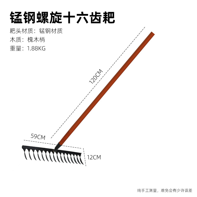 16-tooth spiral twisted tooth rake +1.2 m locust stick