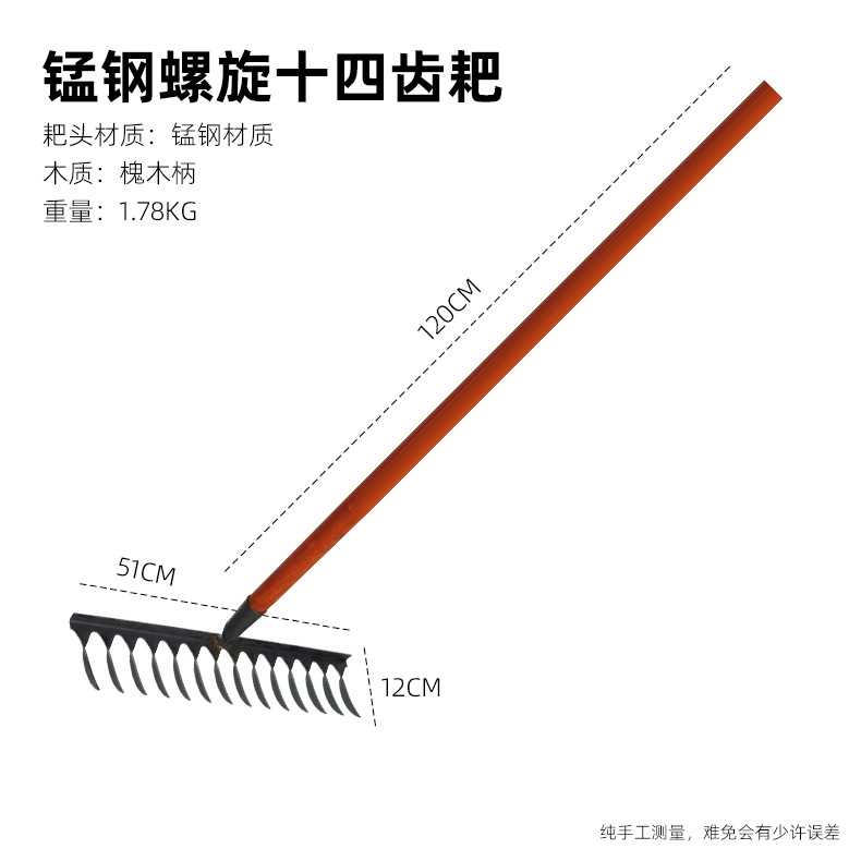 14-tooth spiral twisted tooth rake +1.2 m locust stick