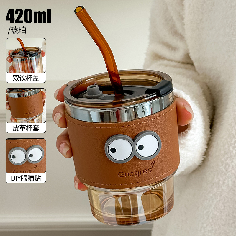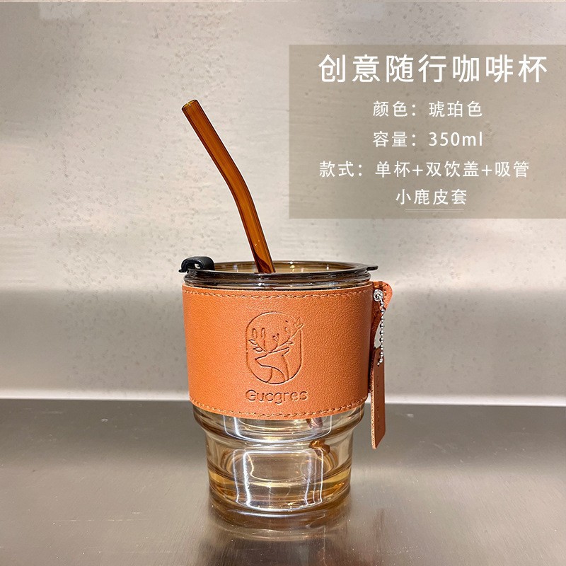 Internet celebrity hit bamboo cup, light and easy to store and clean, leak-proof double drinking lid, exquisite leather insulating cup cover, thickened cup bottom, stable and durable.