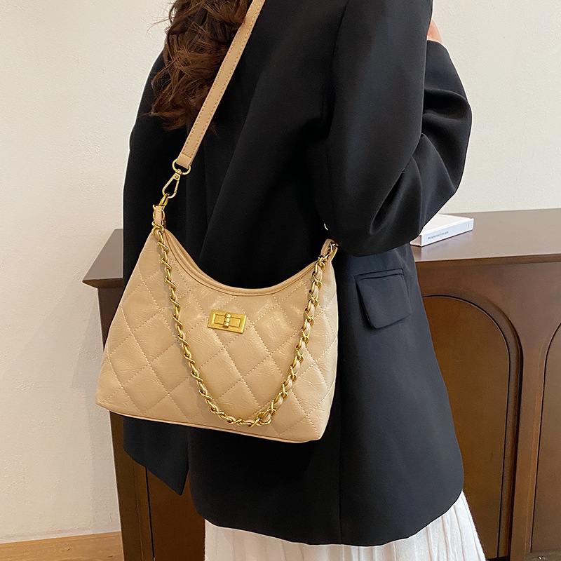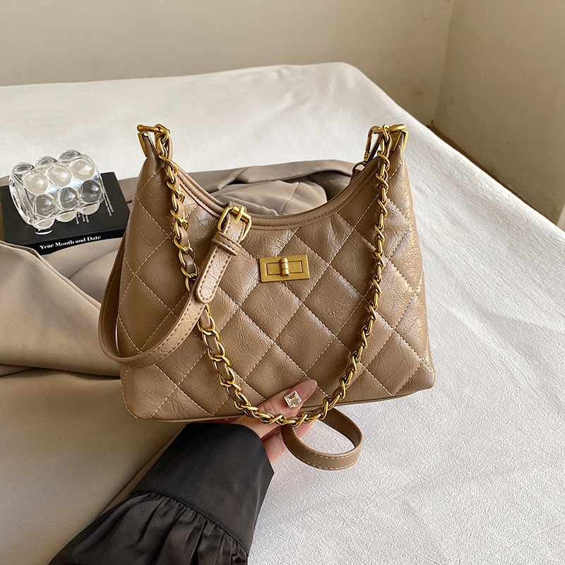retro rhombus chain tote bag female 2024 new commuter portable underarm shoulder crossbody dumpling bag