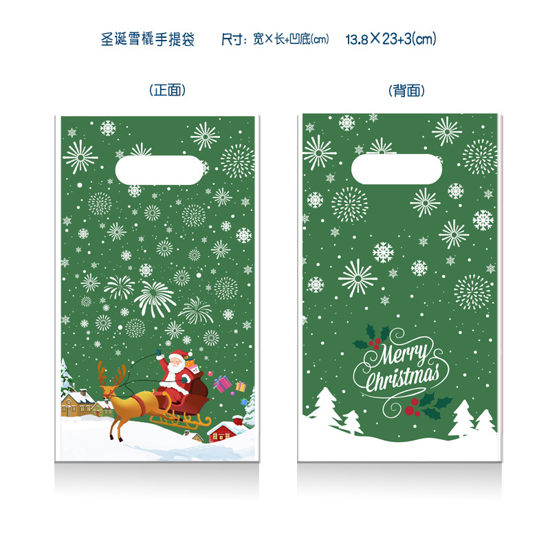50 pcs/bag; portable green bottom christmas snowfield 14*23+6;peva