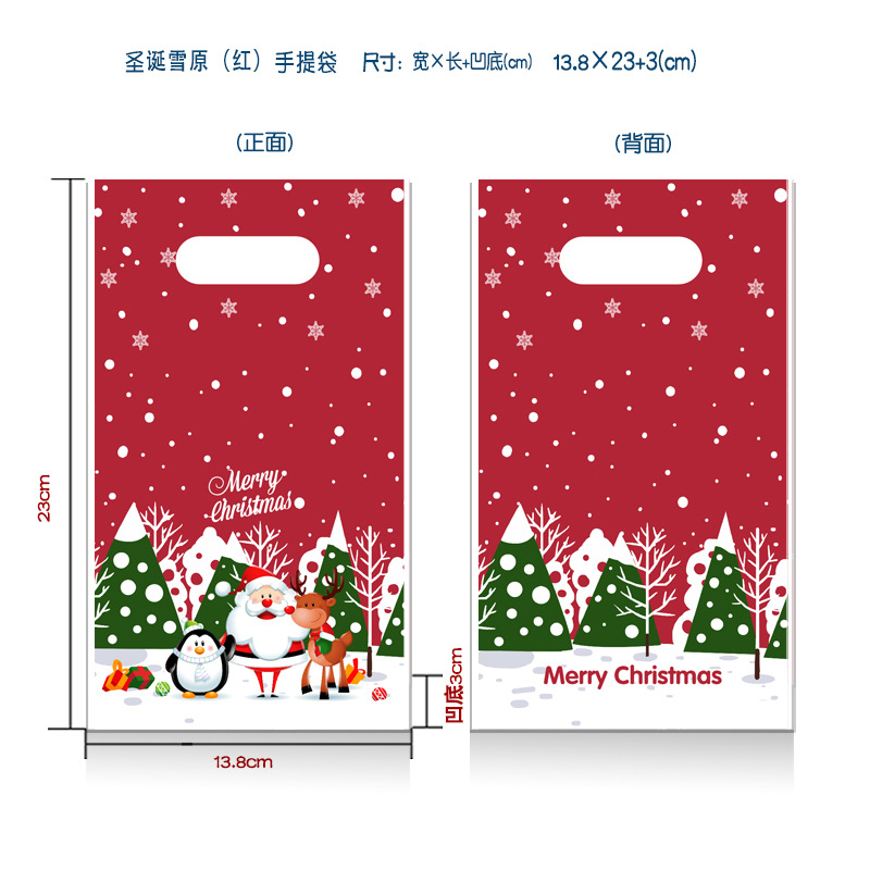 50 pcs/bag; portable red bottom christmas snowfield 14*23+6;peva