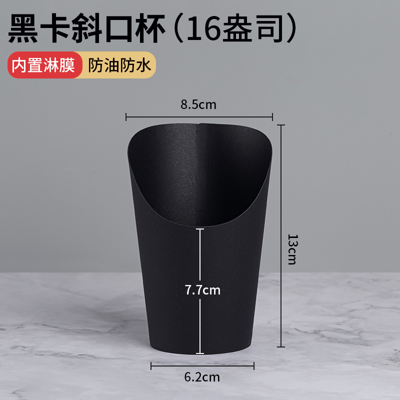 16 oz black fries cup; in stock