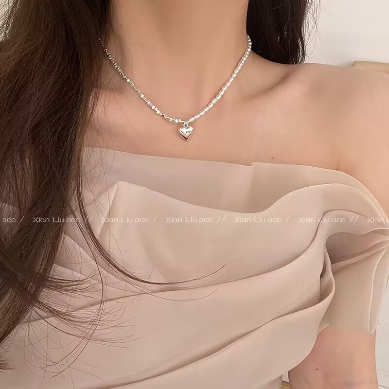 pearl broken silver heart necklace