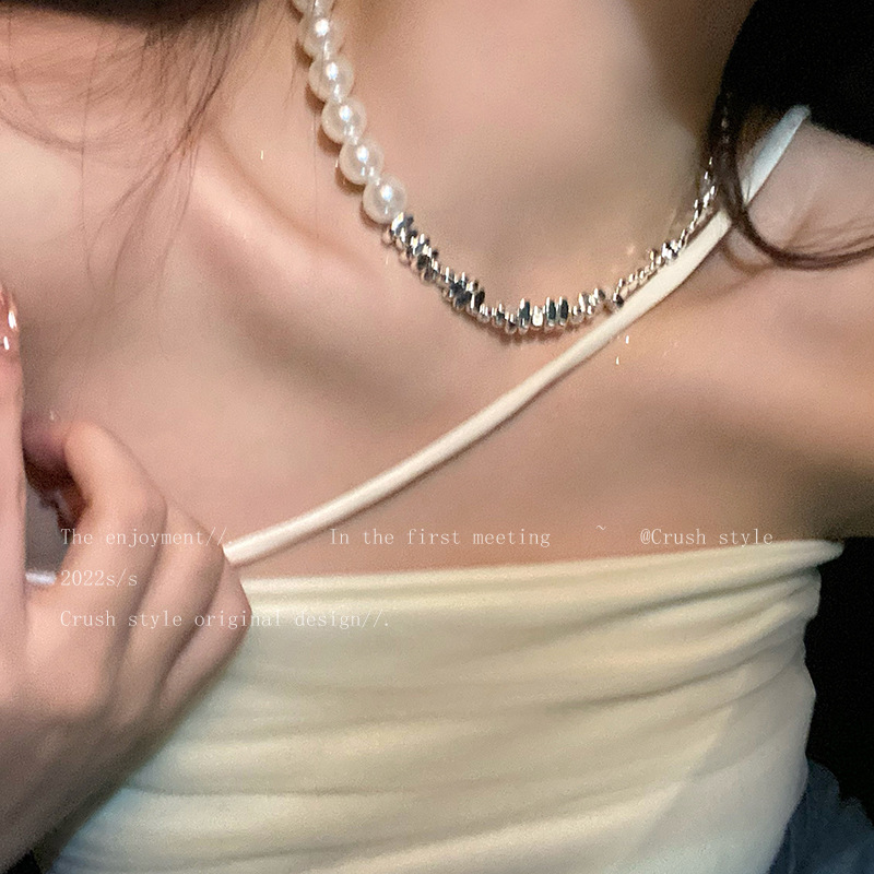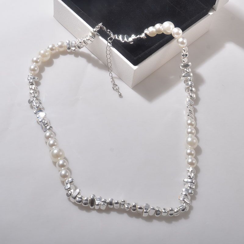 half pearl half broken silver necklace