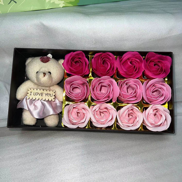 12朵 plus Bear Soap Flower Gift BoxRandomly shipped with bear character brandGift box size: 22.5*11*4.5CM (This is an average size. Due to the purchase of multiple outer boxes, there may be some size differences).