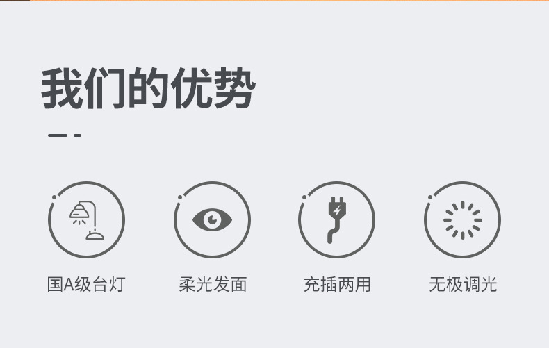 功能特点:国A级大照度高亮款,多角度照明,45分钟定时功能,阅读模式一键直达,后置USB,精美彩盒包装。