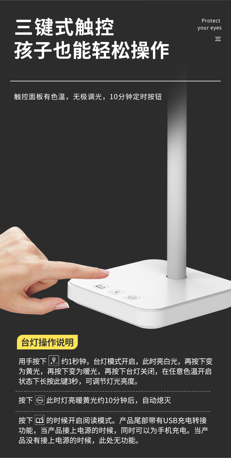 包装清单:1*LED台灯 1*USB电缆 1*用户手册
