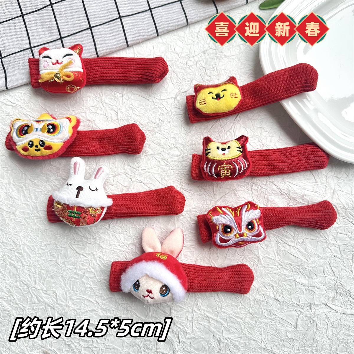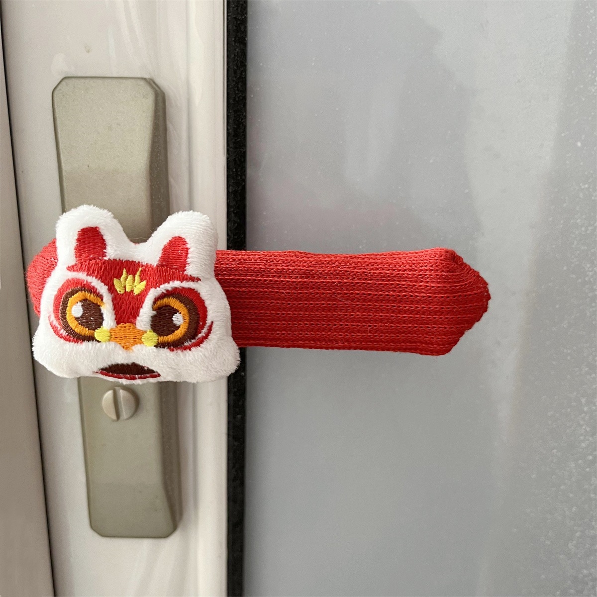 2024 New Year Style Winter and Fall Door Handle Protection Kit Anti-collision Safety Awaken Lion Dragon Gate Handle Protection Kit Knitted Thickening
