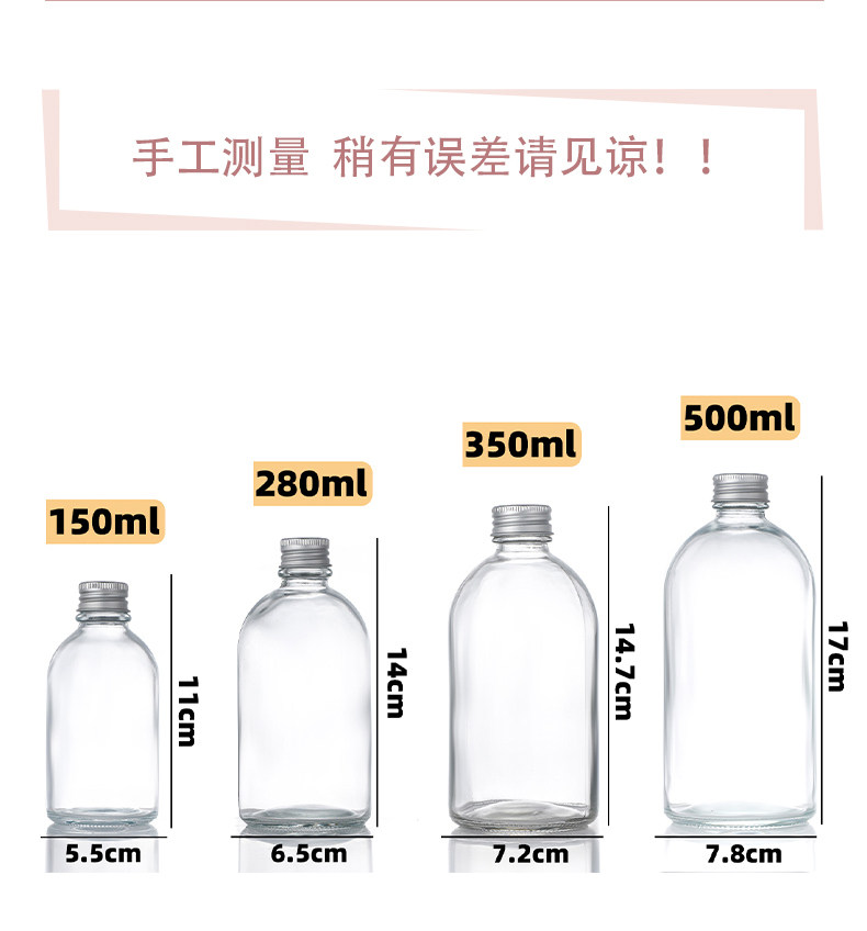 350ml transparent bottle with silver aluminum cover; transparent