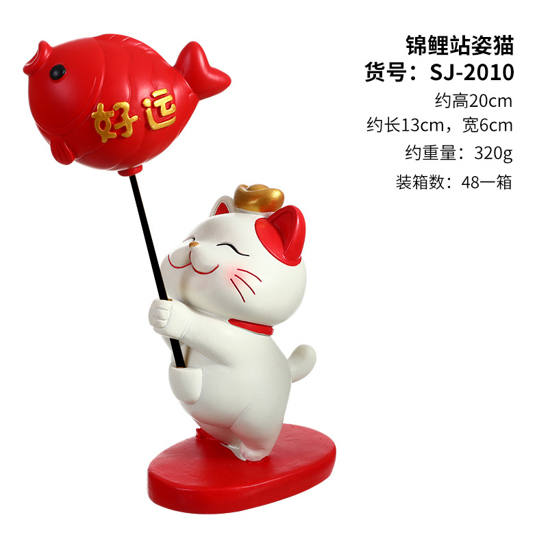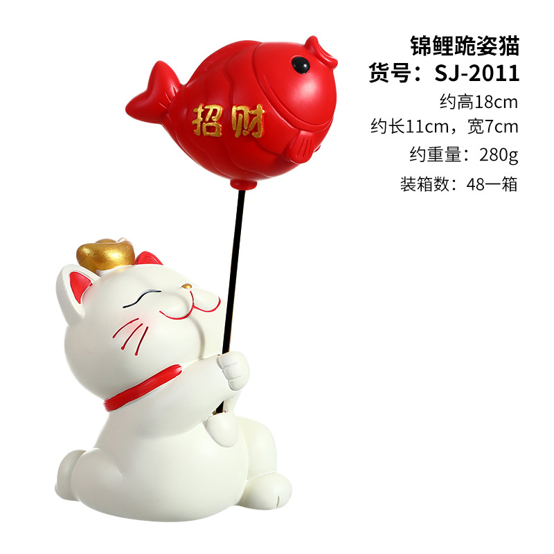 resin cat small ornaments-waving