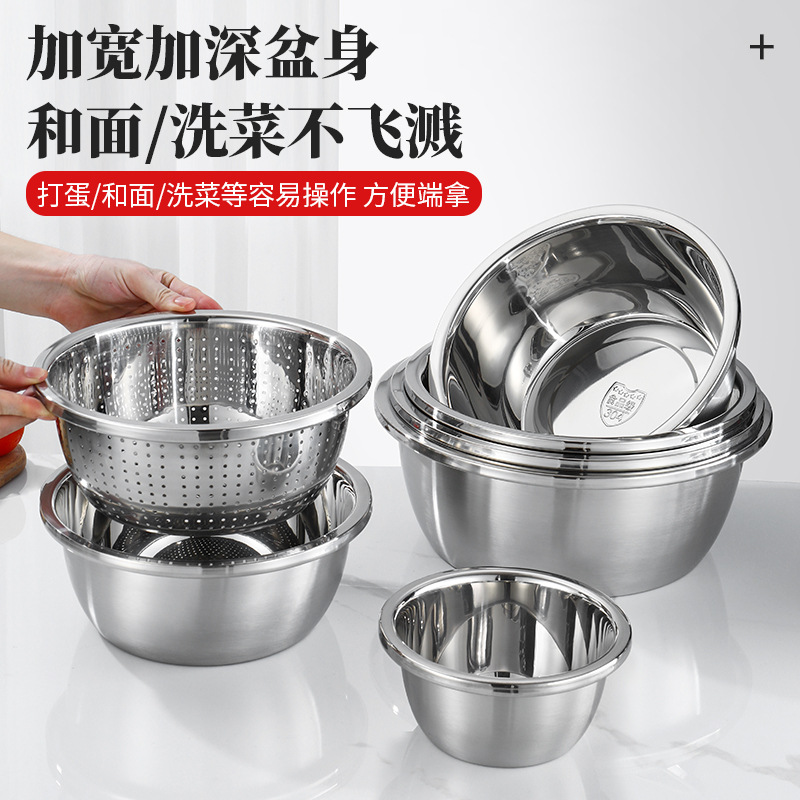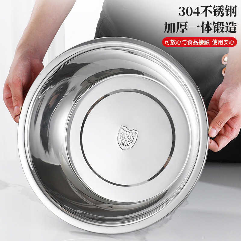 304 stainless steel basin thick round household soup plate egg pots basin food grade seasoning jar washing basin kitchen
