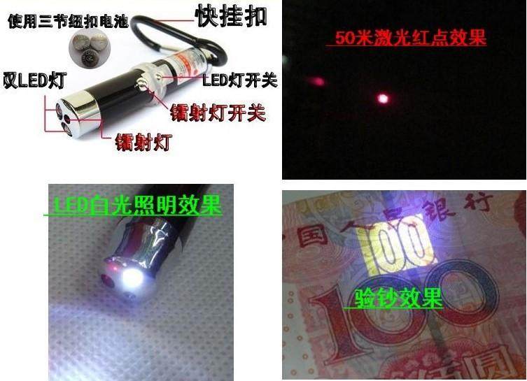 Features:Two switches, three different lights. The red laser light is very cool to play with, and the ultra-practical bill detector light helps you avoid embarrassment from fake money! There's also a small solar-powered flashlight, which is very practical! This product comes with three AA batteries and an aluminum clip, ready to use right out of the box.