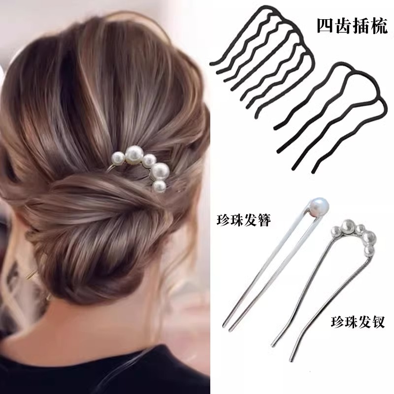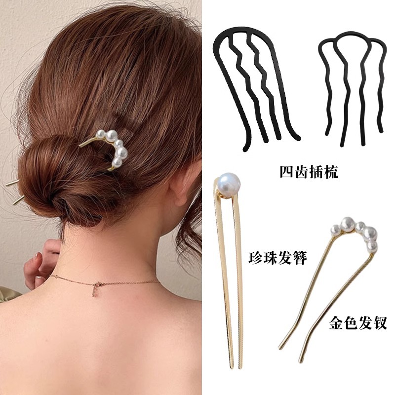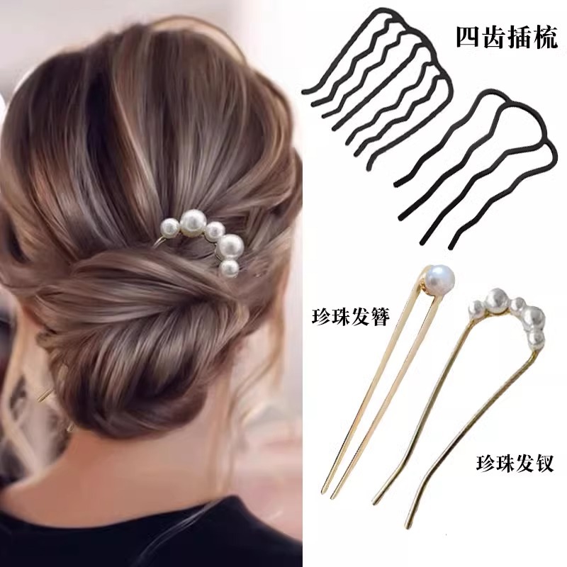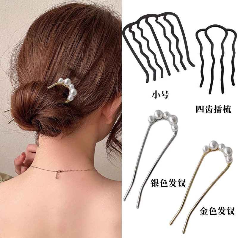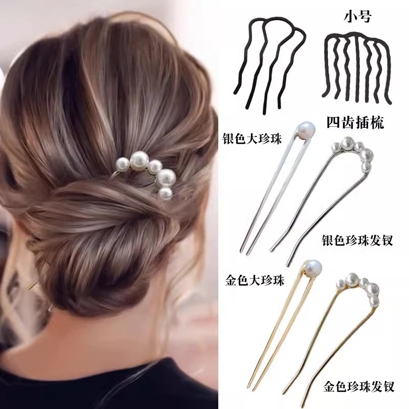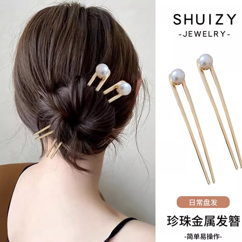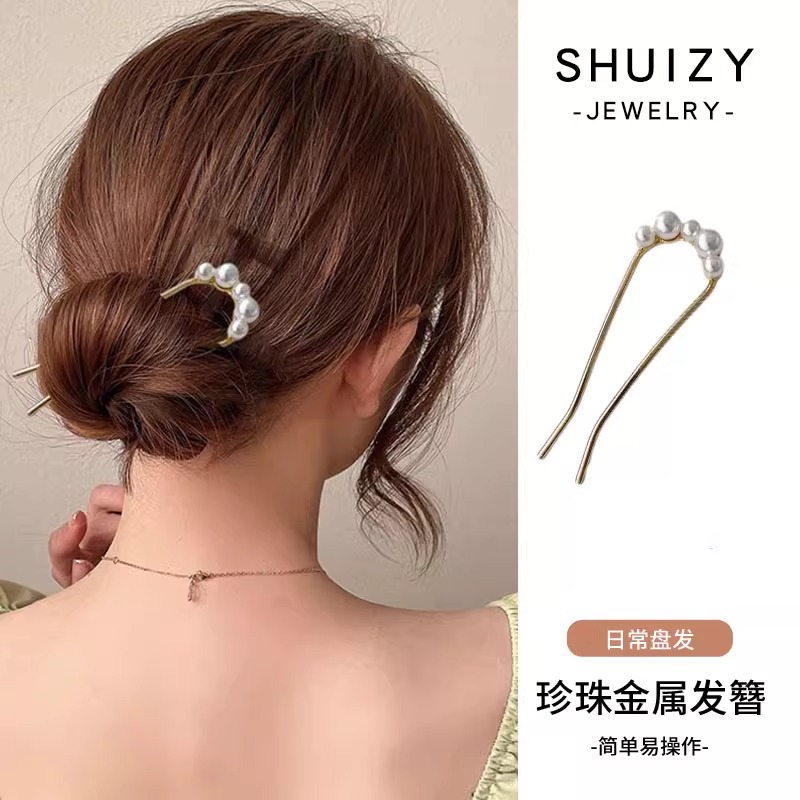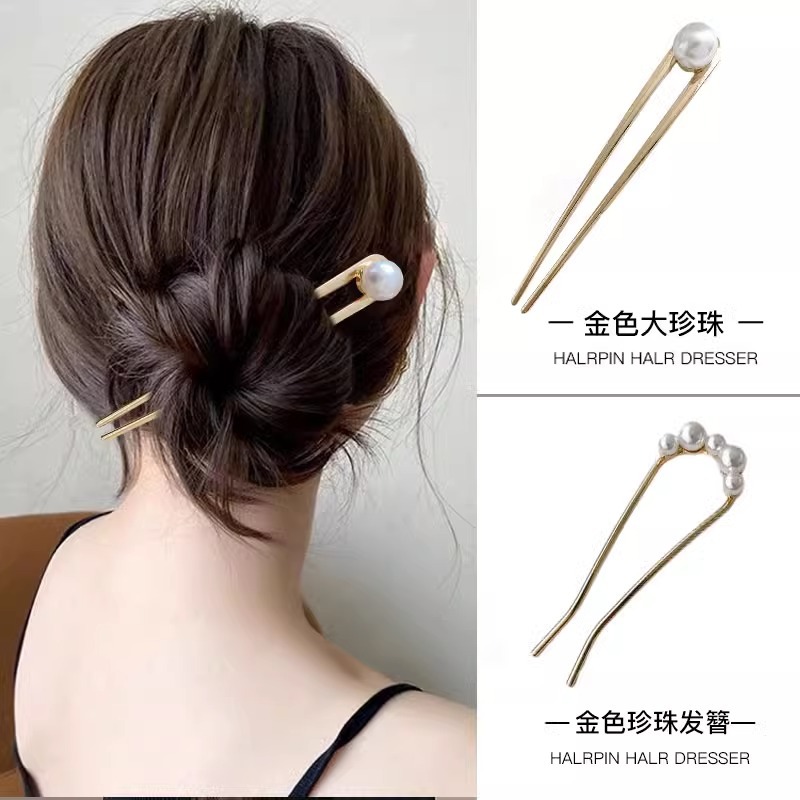 1# golden pearl hair clasp