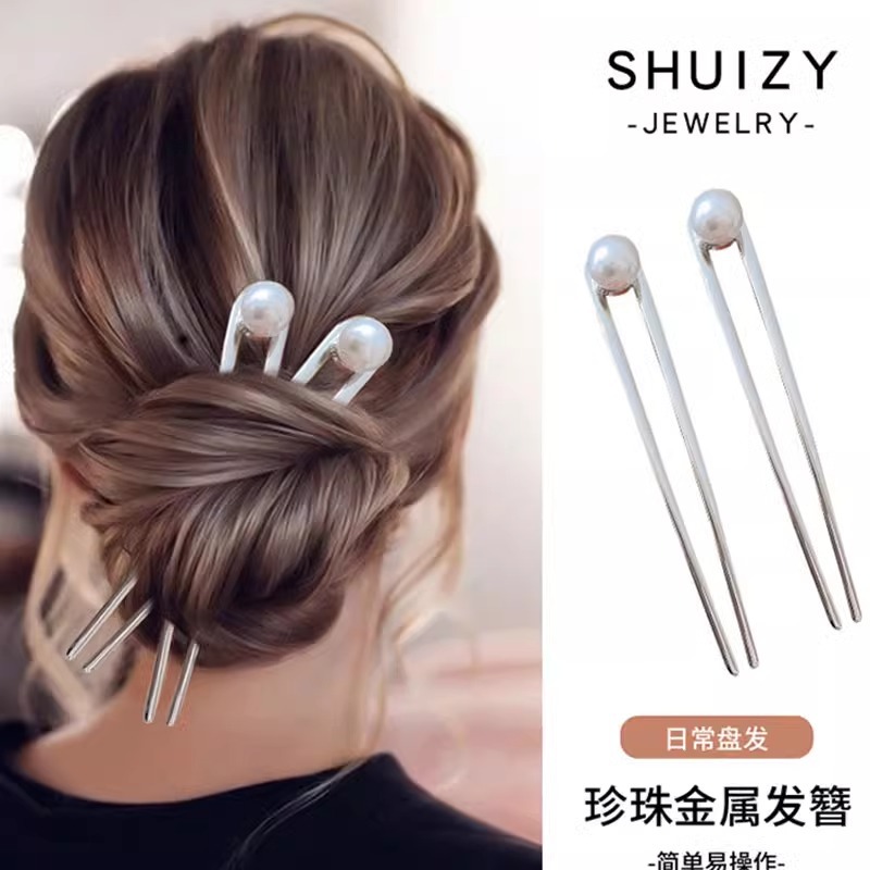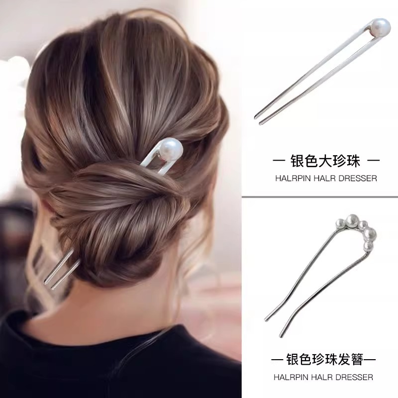 2# silver pearl hair clasp