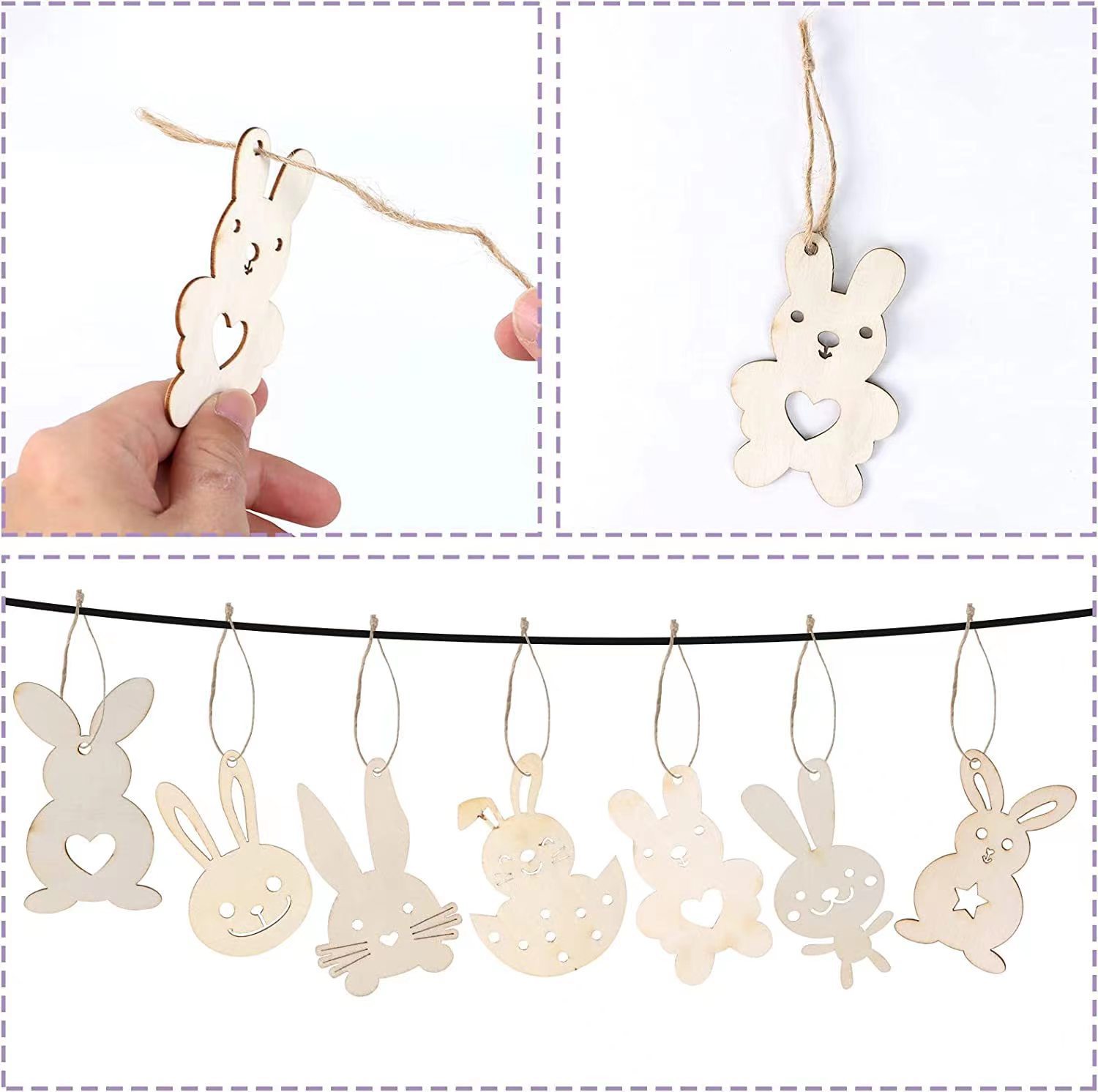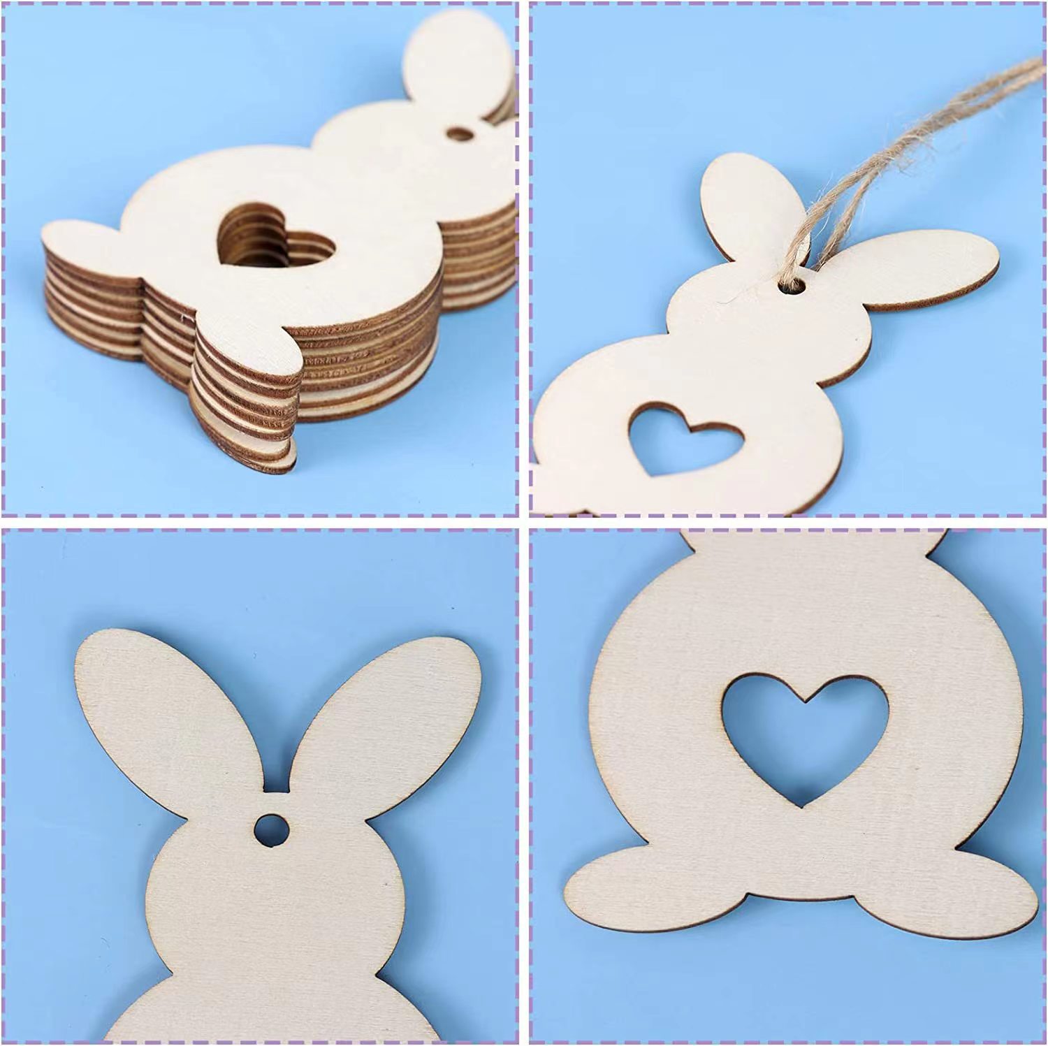 unfinished easter blank wooden rabbit shape ornament for painting easter party decoration