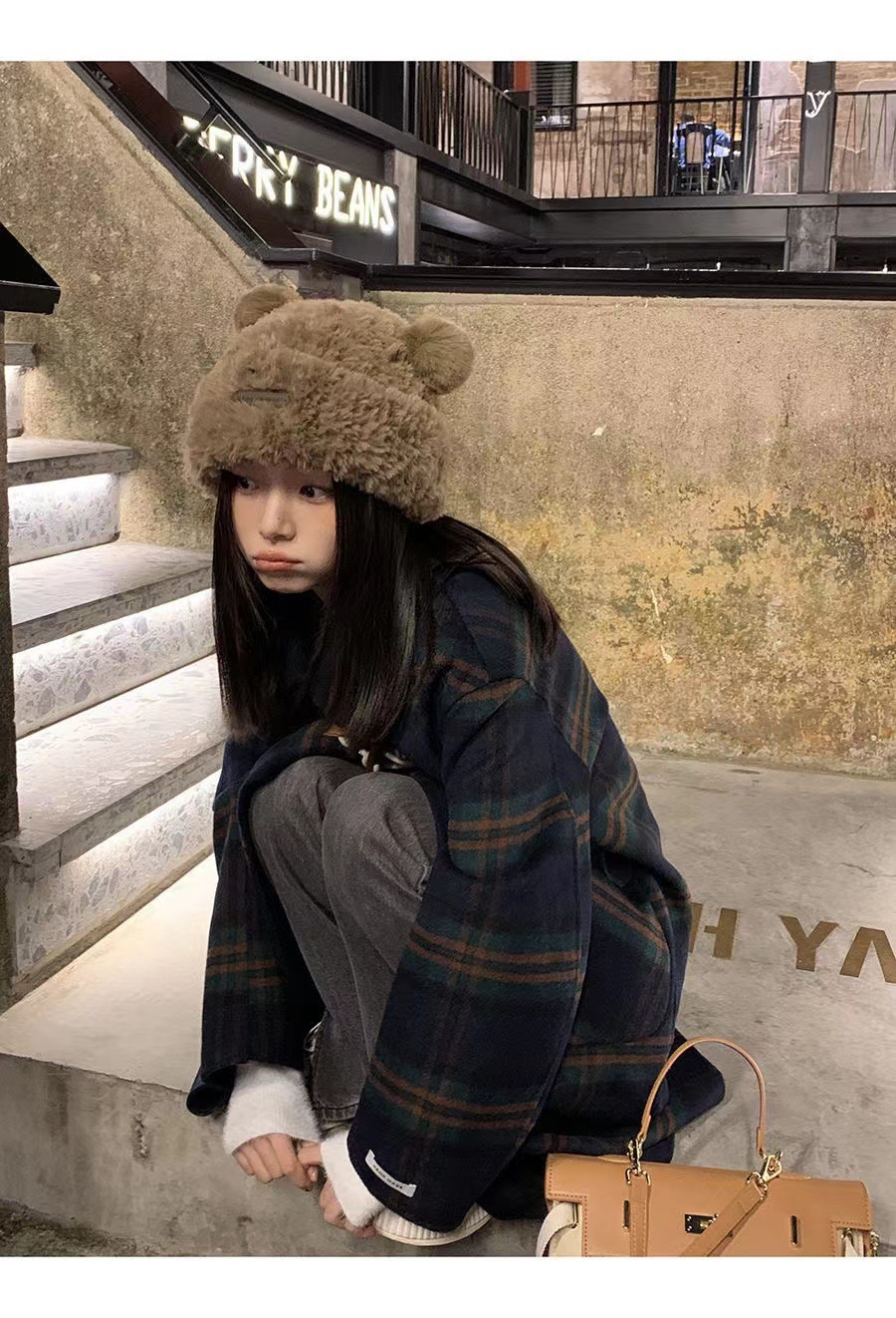 leather tag bear> khaki