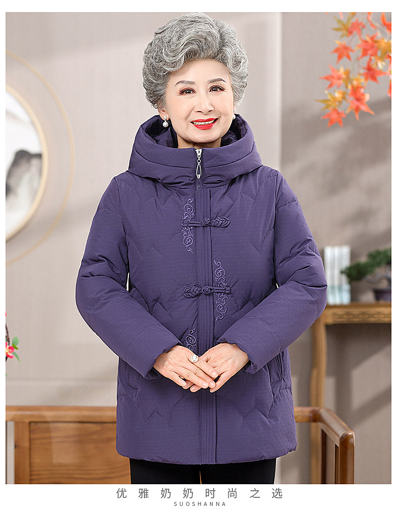 new chinese mom wear removable hooded embroidery white duck down coat plus size middle-aged and elderly women's down jacket