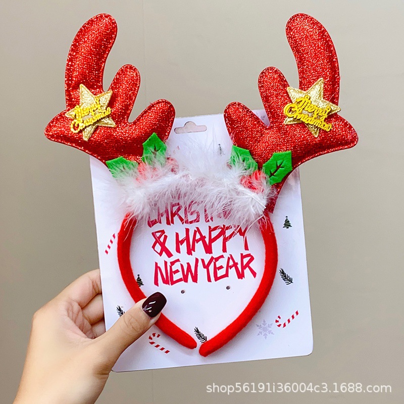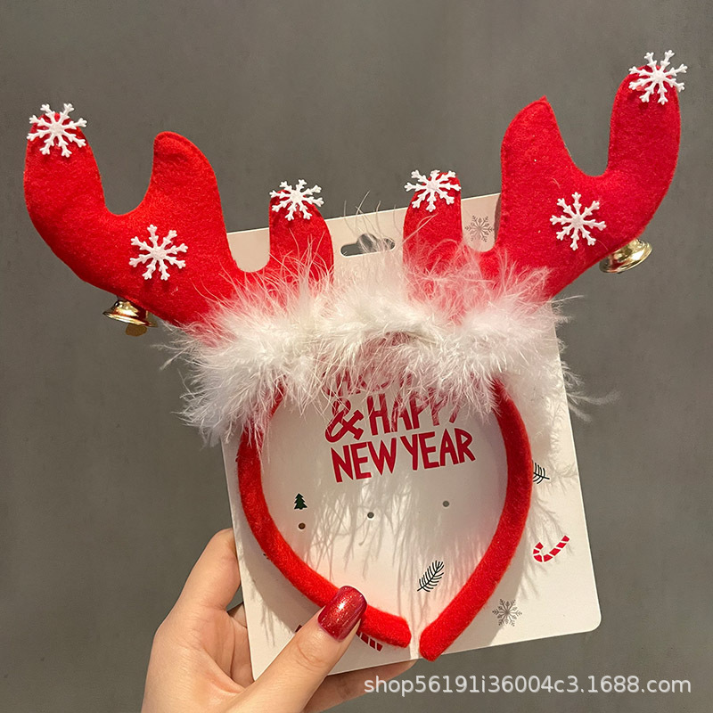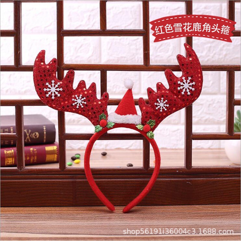 xc-2-6-red paillette snowflake antlers hat headband