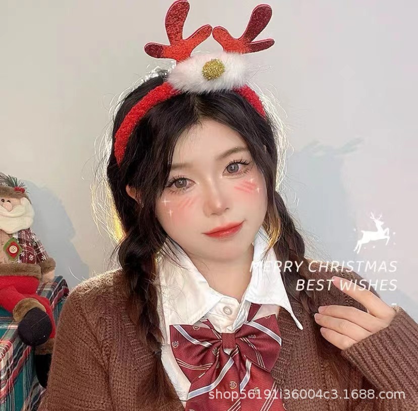 xa-4-1-lamb hairy ball red antler hairband