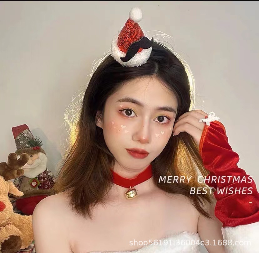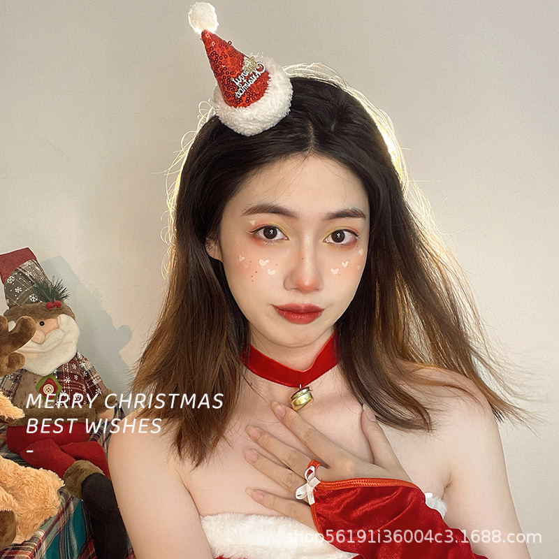 xl-1-2-snowflake sequined hanging cap red slim hair hoop