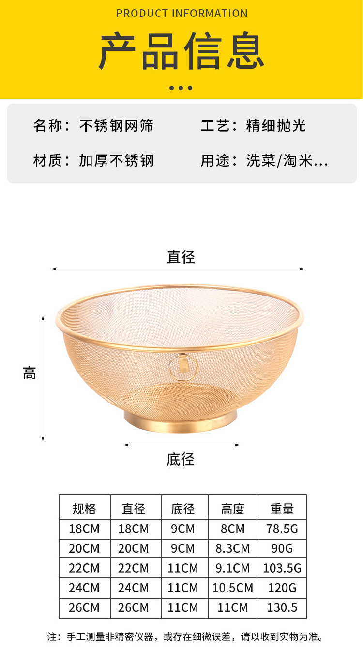 stainless steel kitchen washing basket dish washing basket drain basket fruit basket rice rinsing sieve fruit plate screening mesh fried sieve dense mesh