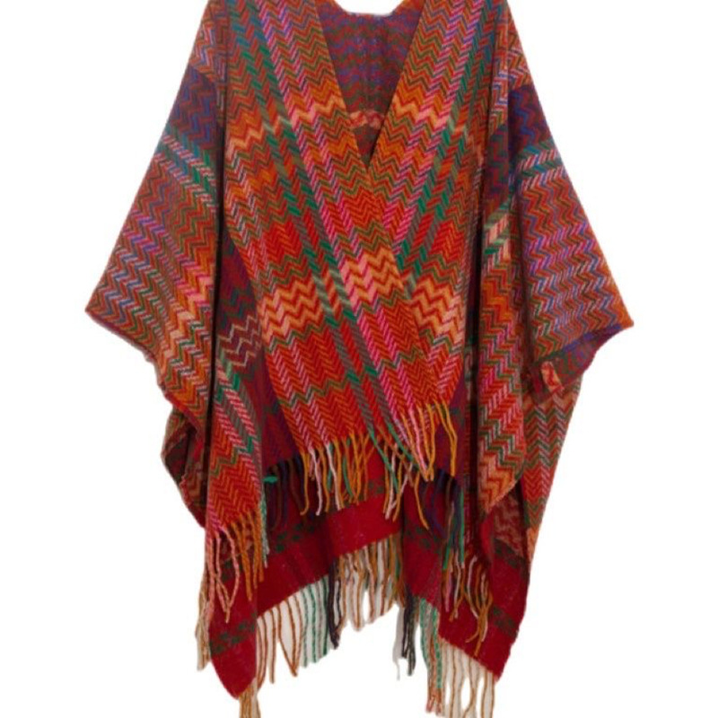 plaid retro shawl-red