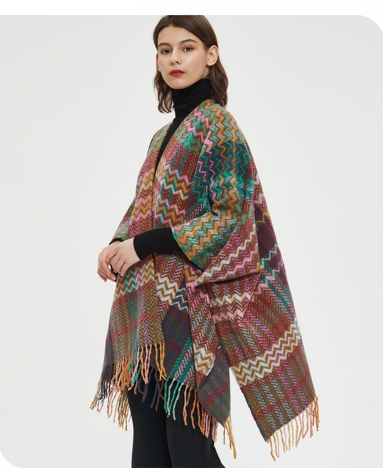 plaid retro shawl-black