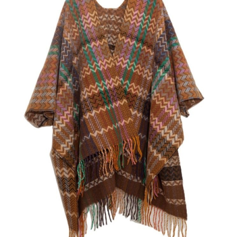 plaid retro shawl-brown