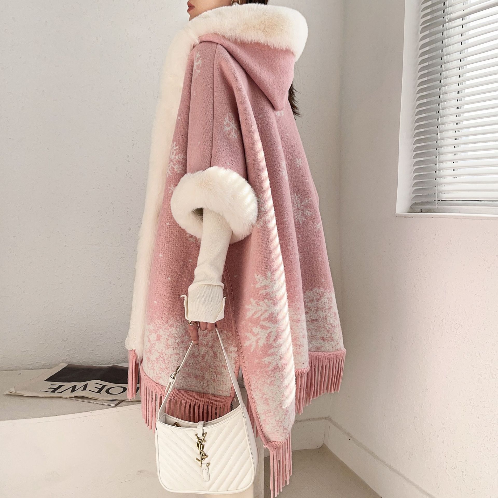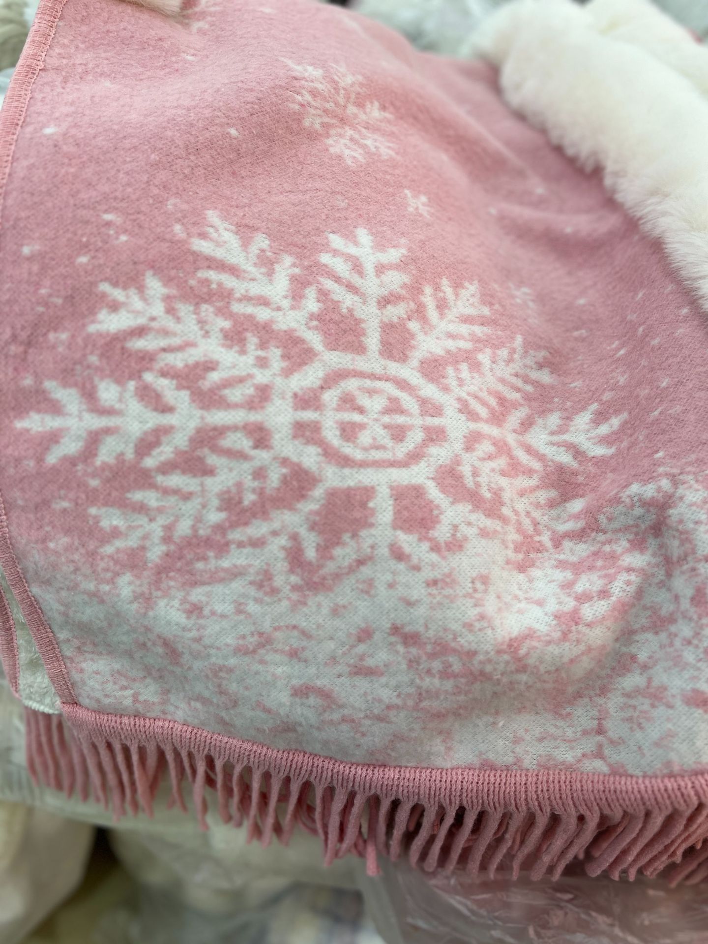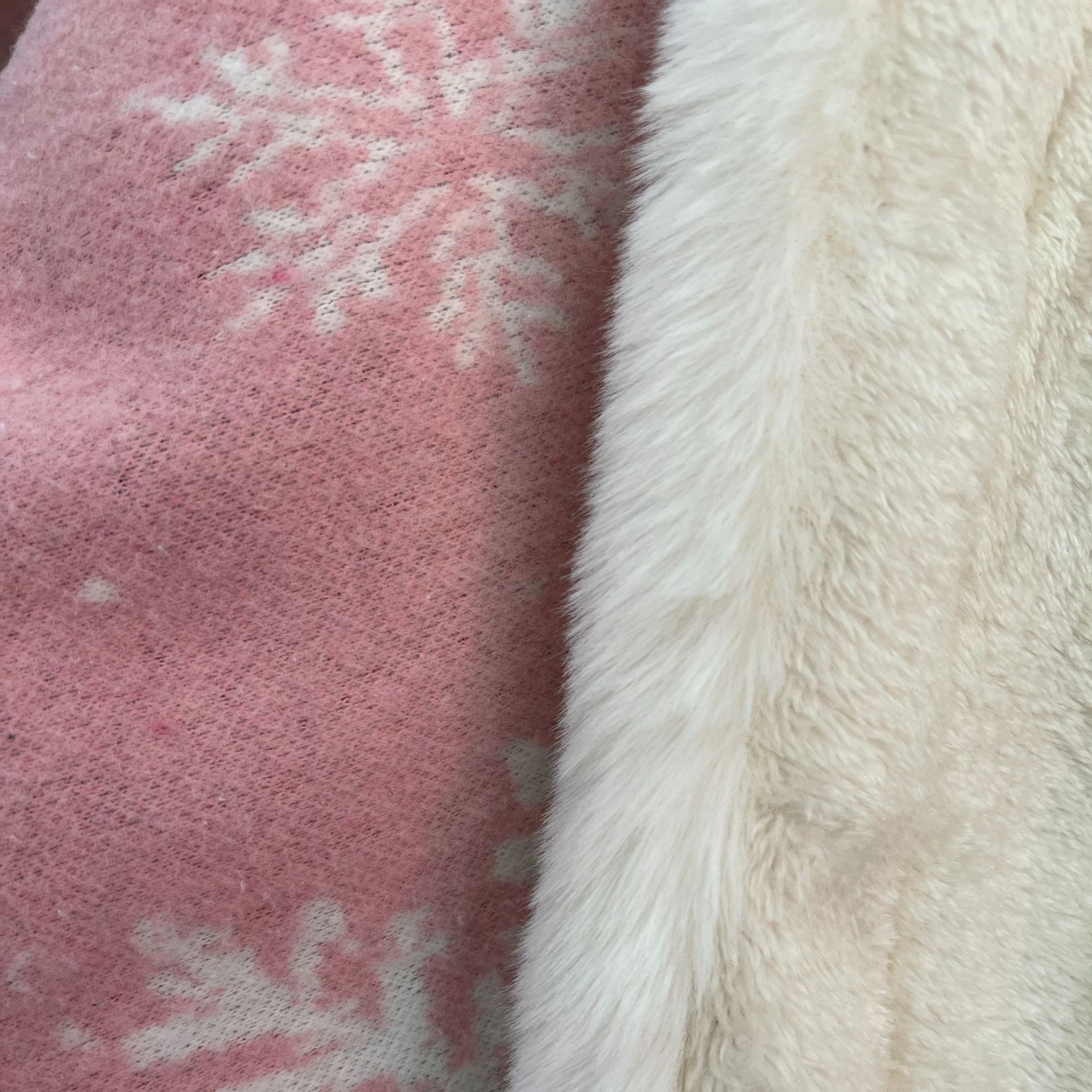8019# pink snowflake fleece-lined